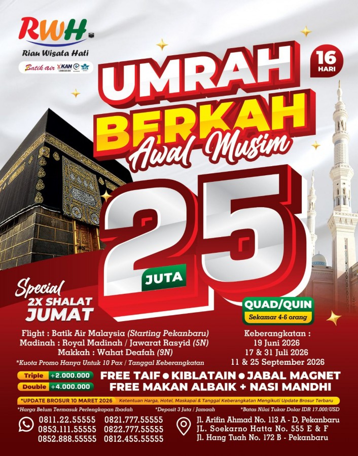 "Wujudkan impian berangkat Umroh yang Mudah, Cepat dan Aman bersama Riau Wisata Hati Service"