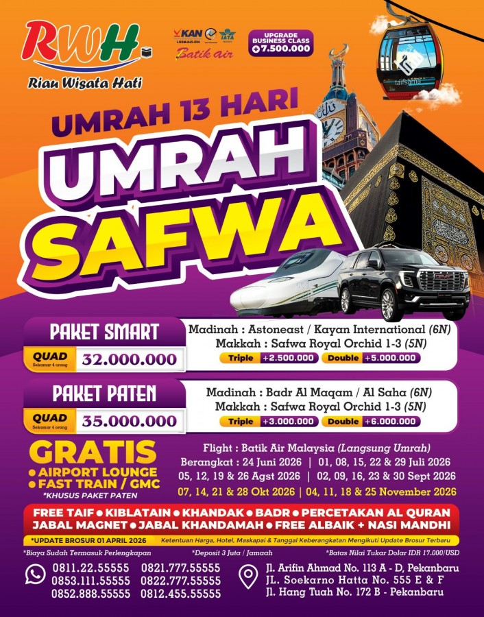 "Wujudkan impian berangkat Umroh yang Mudah, Cepat dan Aman bersama Riau Wisata Hati Service"