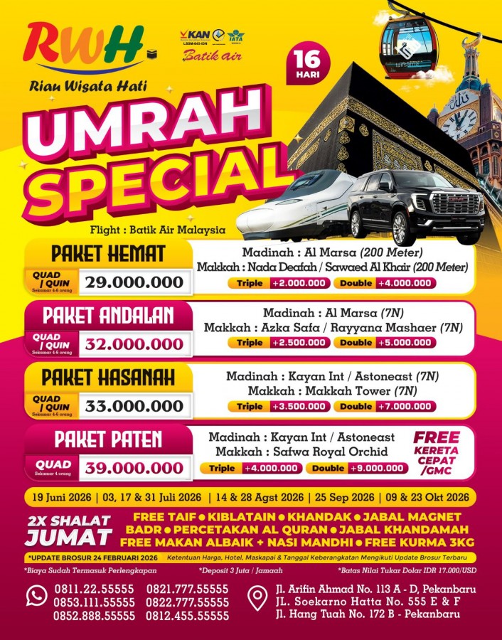 "Wujudkan impian berangkat Umroh yang Mudah, Cepat dan Aman bersama Riau Wisata Hati Service"