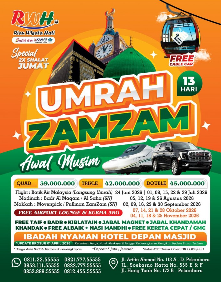 "Wujudkan impian berangkat Umroh yang Mudah, Cepat dan Aman bersama Riau Wisata Hati Service"